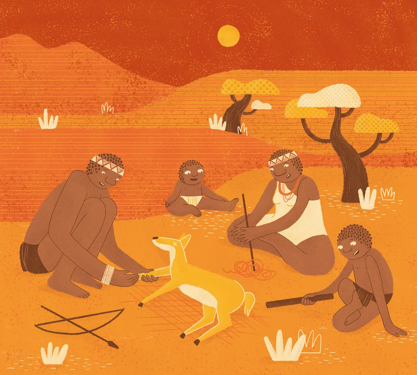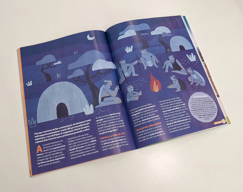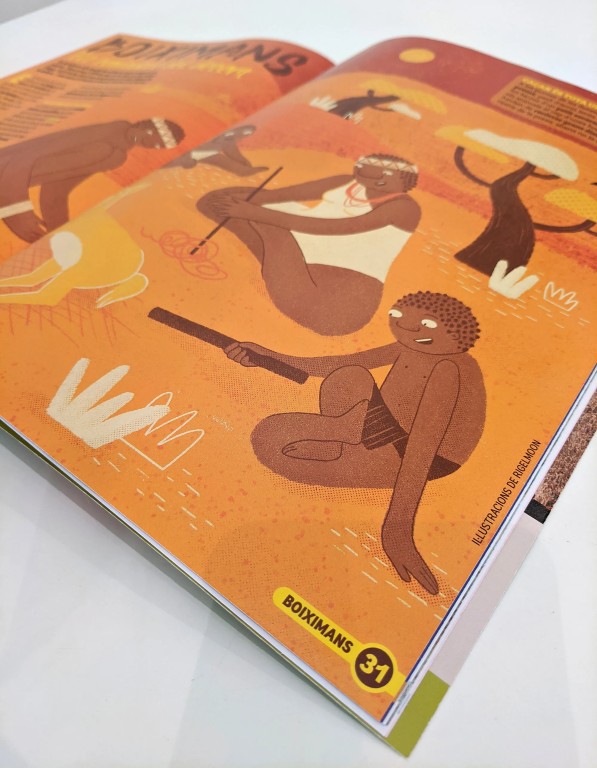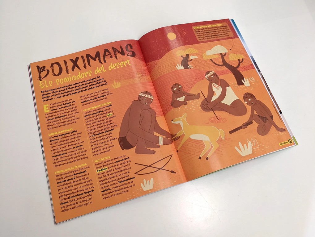 Illustrations for the June 2020 edition of the Barcelona children’s magazine Petit Sàpiens for the note of the Bushmen.