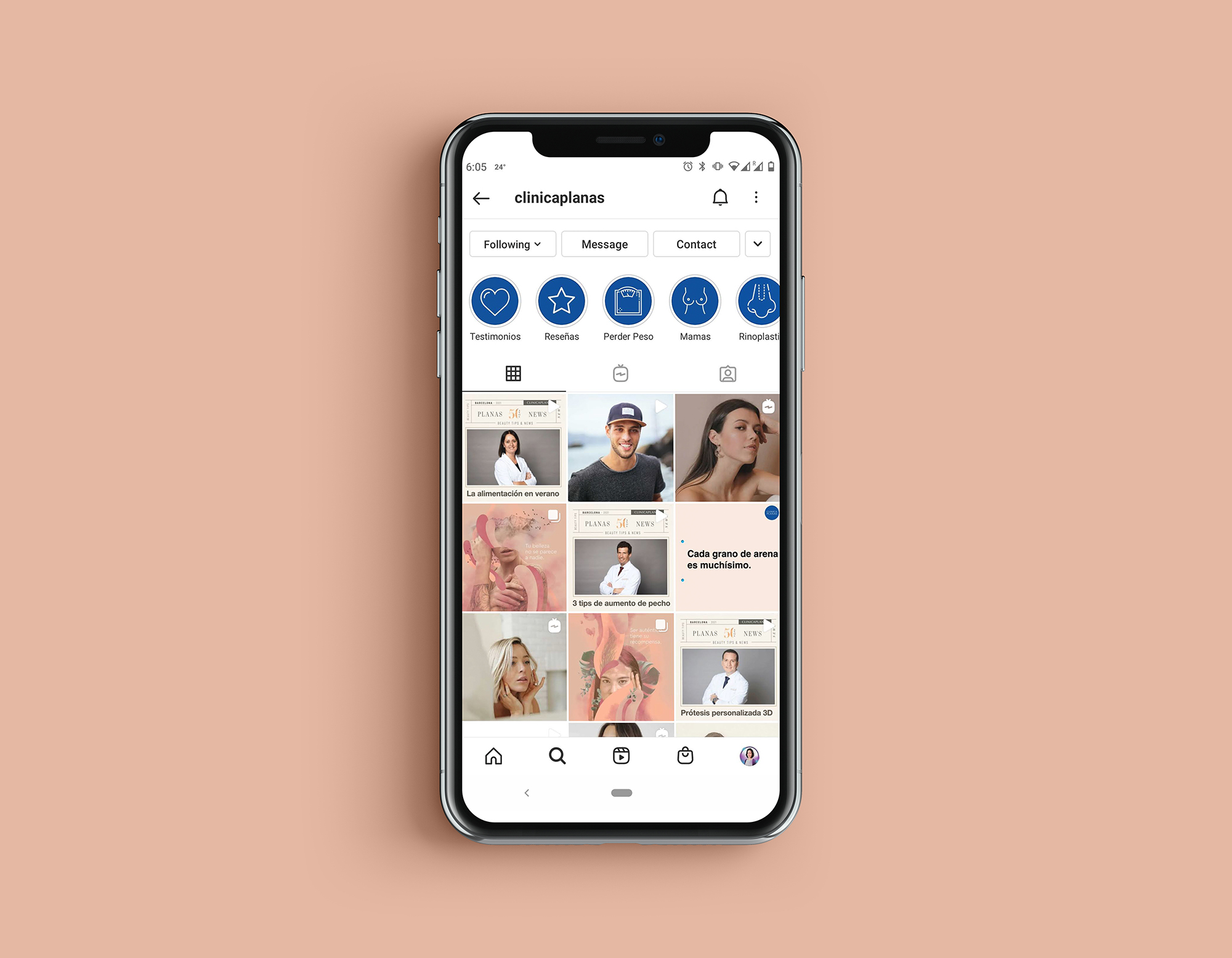 Creation of body positive campaign exclusive for instagram for Clínica Planas plastic surgery clinic.