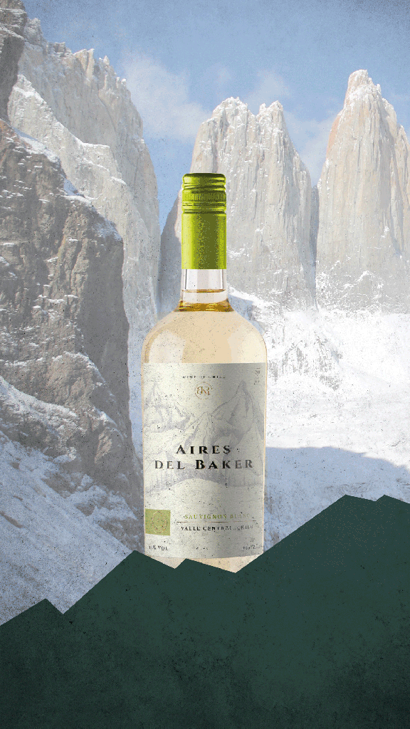Dirección de arte de identidad, diseño, ilustración y animación para la nueva marca de vinos chilenos Aires del Baker.